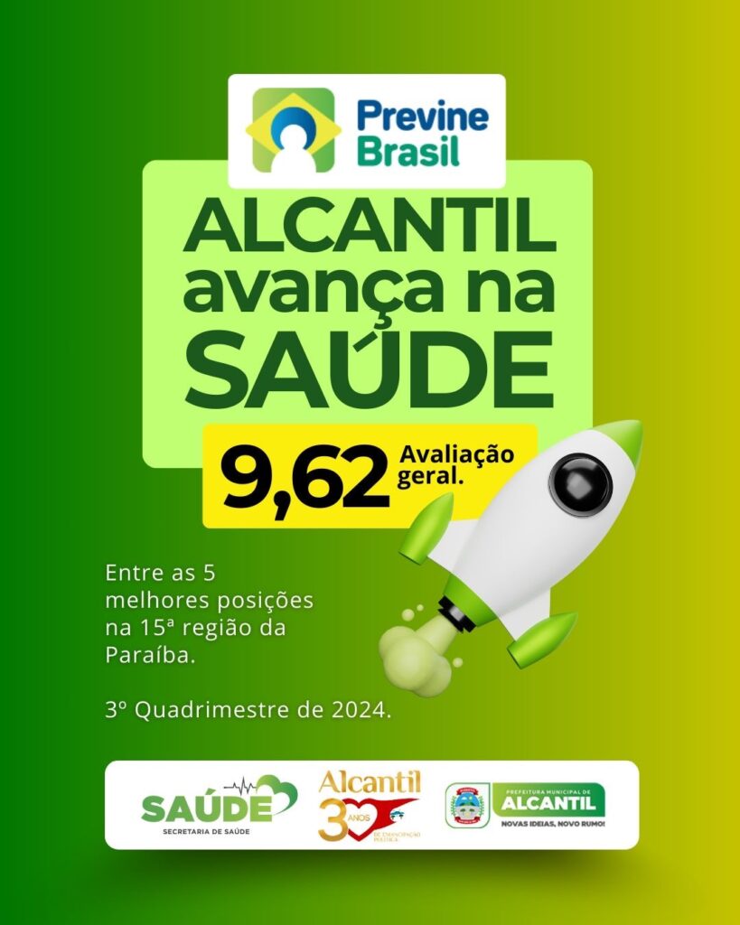 De acordo com os dados do Previne Brasil, o município de Alcantil ganhou posição de destaque na pesquisa que avalia a qualidade da saúde no Estado da Paraíba. Na lista liberada, o município ocupa o 5º lugar entre os municípios da 15ª região da Paraíba, alcançando a nota de 9,62 no terceiro quadrimestre de 2023.