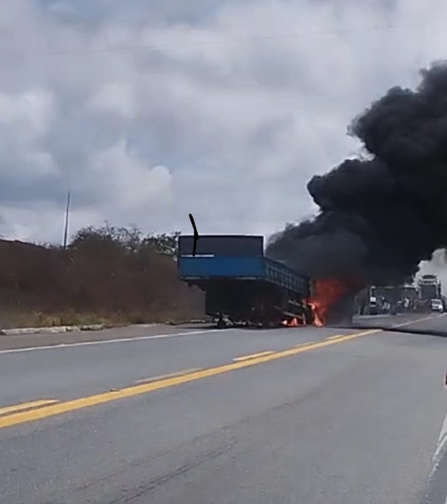 Na tarde de hoje, um incidente assustador ocorreu na BR-104, entre as comunidades de Logradouro e Riacho Grande, no município de Alcantil. A carroceria de uma carreta pegou fogo, criando uma cena dramática na rodovia.