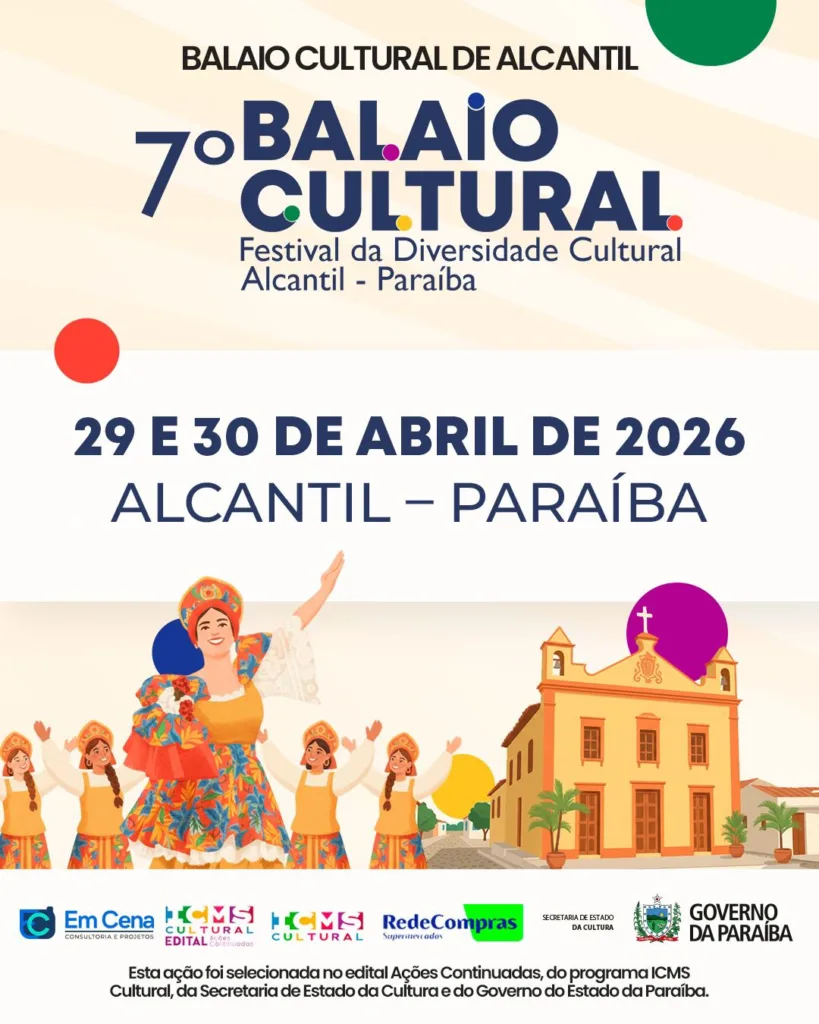 O 7º Balaio Cultural em Alcantil foi anunciado pela Em Cena Consultoria e Projetos Ltda, que confirmou a realização do evento no município como parte das ações de incentivo à cultura na Paraíba.
