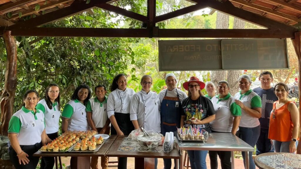 A recepção foi repleta de afeto. Ao passar pela porteira, funcionários distribuíram adesivos com a foto da diretora executiva do Engenho, Maria Júlia Baracho , e uma poesia motivadora, semelhante ao único objeto que restou intacto do incêndio ocorrido no dia 10 de março, fato que motivou a suspensão das atividades por uma semana do local.
