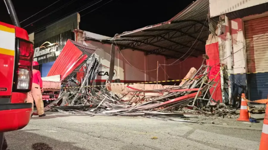 Um jovem identificado como Danilo, de 18 anos, morreu, e outra pessoa ficou ferida após o desabamento de uma estrutura de concreto em uma loja de automóveis na tarde desta quarta-feira (22), na avenida João Suassuna, no Centro de Campina Grande.