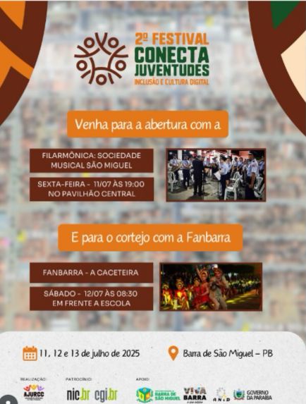 Barra de São Miguel sedia, a partir desta sexta-feira (11), o Festival Conecta Juventudes – Inclusão e Cultura Digital, um evento gratuito que reúne música, arte, cultura popular e ações voltadas ao protagonismo juvenil. Com programação intensa até o domingo (13), o festival promete movimentar a cidade e fortalecer espaços de expressão para a juventude local e regional.
