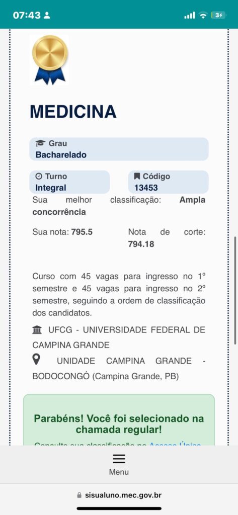 A jovem Anny Mahara Ricarte Martins, filha do renomado empresário Anchieta Promoções e de Sheila Ricarte Martins, conquistou uma vaga no curso de Medicina da Universidade Federal de Campina Grande (UFCG). A aprovação em um dos cursos mais concorridos do país é fruto de dedicação, esforço e do apoio de sua família, que celebra mais essa grande vitória.