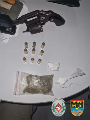 O indivíduo estava com um carro clonado, e ao ser procedida a busca no interior do veículo foi encontrado um revólver calibre .38, 9 munições do mesmo calibre, uma embalagem com aproximadamente 100 g de substância semelhante à maconha e dois embrulhos de um pó semelhante à cocaína.