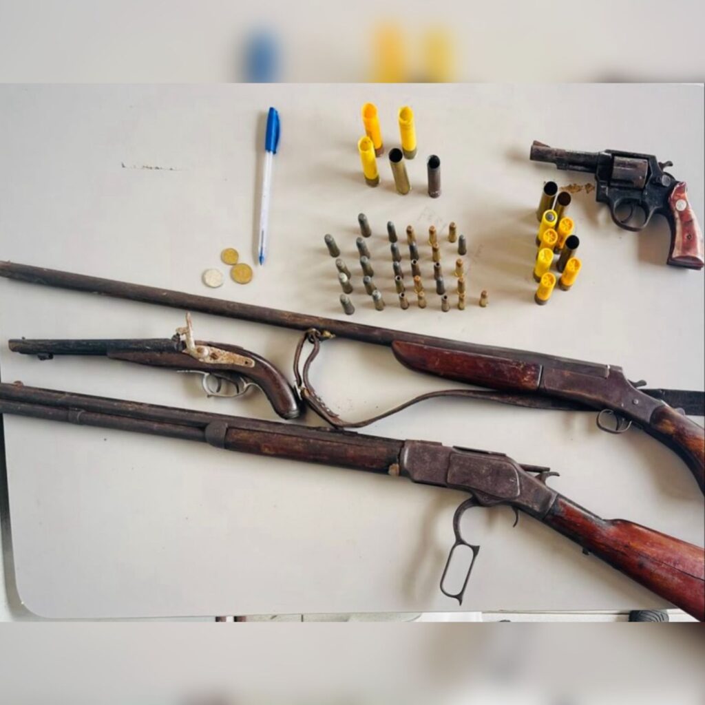 De acordo com informações da PM, a operação teve início após denúncias de disparos na localidade. Ao chegar ao endereço indicado, a guarnição constatou a veracidade da denúncia e encontrou quatro armas de fogo em posse do suspeito.