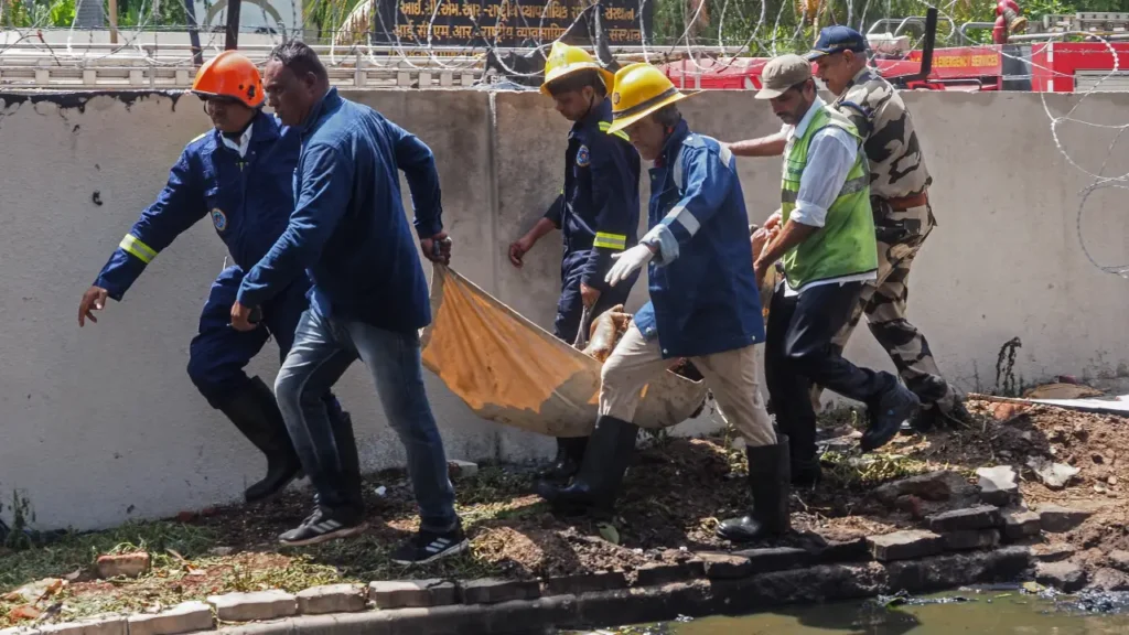 A TV indiana CNN News-18 informou que o voo AI171 da Air India caiu em cima do refeitório do alojamento da Faculdade de Medicina B.J., administrada pelo governo estadual, matando também “muitos” estudantes de medicina, que almoçavam no local. Partes do avião ficaram espalhadas pelo edifício. A cauda do avião ficou presa no topo do prédio.