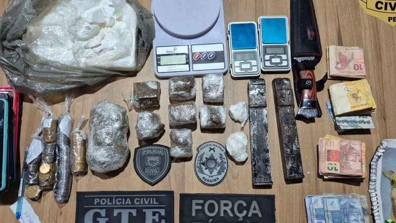 Durante a operação, foram cumpridos dois mandados de busca domiciliar em imóveis identificados como pontos de venda e armazenamento de drogas e armas de fogo. Seis suspeitos foram presos em flagrante, e os agentes apreenderam grande quantidade de entorpecentes, balanças de precisão e materiais utilizados para embalar e separar as drogas.