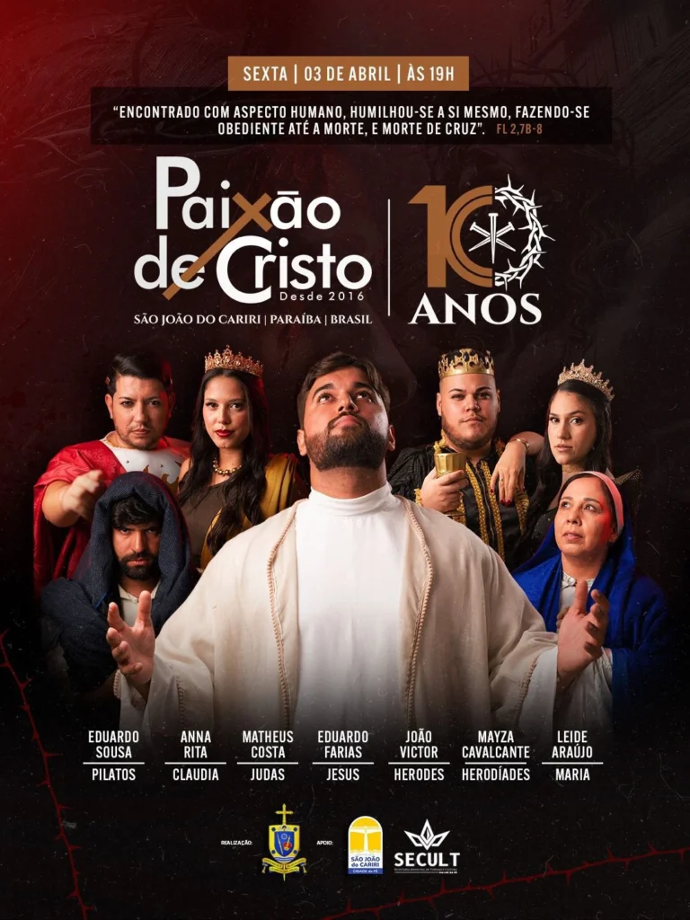 O município de São João do Cariri, no Cariri paraibano, se prepara para celebrar uma data marcante com a realização da 10ª edição da tradicional encenação da Paixão de Cristo em 2026. O espetáculo, que já se consolidou como um dos principais eventos culturais e religiosos da região, promete uma edição especial para comemorar uma década de história.