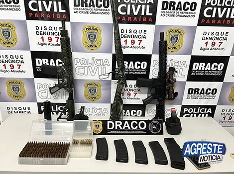 Na última terça-feira (9), a Polícia Civil da Paraíba, através da equipe da DRACO (Delegacia de Repressão ao Crime Organizado) com o apoio da Inteligência, do Canil da Polícia Civil da Paraíba e a Polícia Civil de Pernambuco, deflagrou a operação denominada ‘Senhor das Armas’, apreendendo um arsenal de uma facção criminosa em Santa Cruz do Capibaribe.
