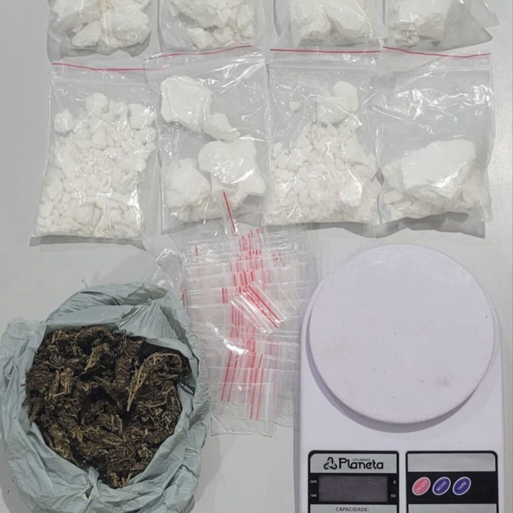 Durante a varredura no local onde os suspeitos estavam, os policiais encontraram materiais abandonados, totalizando cerca de 372 gramas de uma substância análoga à cocaína e 56 gramas de uma substância semelhante à maconha.