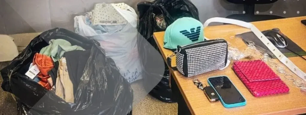 Confira os materiais apreendidos: 118 peças de roupa variadas, 2 (duas) bolsas, 1 aparelho celular, 3 cintos e 1 boné e o automóvel usado na ação criminosa.