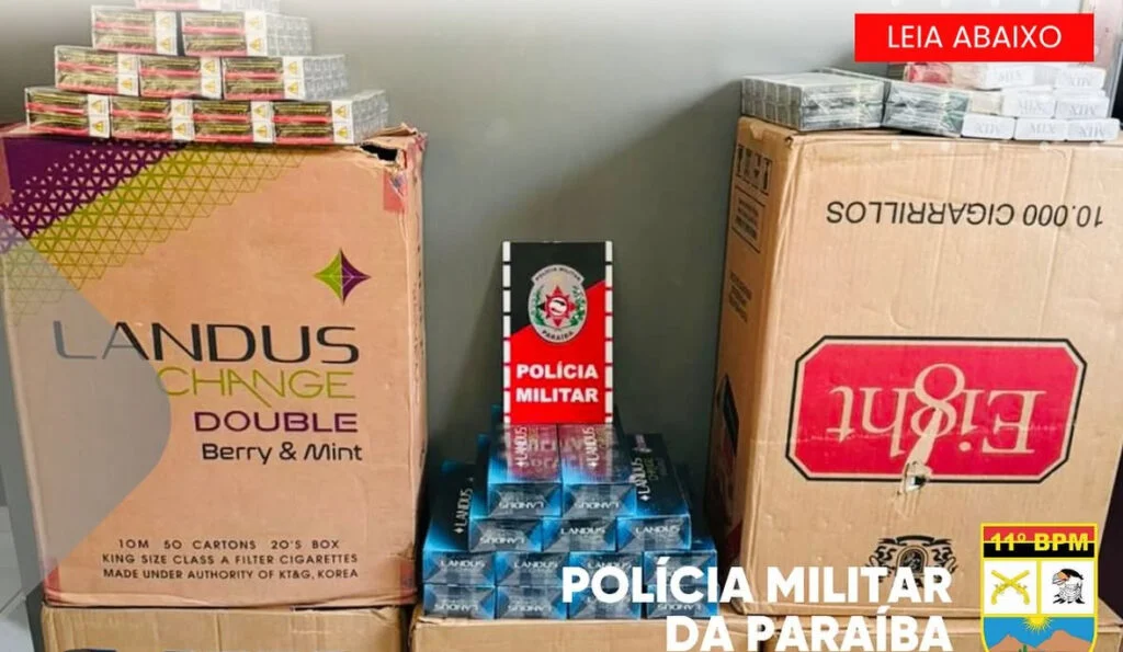 Nesta terça-feira (30), a Polícia Militar do 11º Batalhão prendeu um homem acusado de contrabando de cigarros na cidade do Congo, Cariri Paraibano. Durante rondas de rotina, os policiais abordaram o suspeito e encontraram em sua posse 2.094 maços de cigarros, com origem no Paraguai e na Indonésia. O material apreendido foi imediatamente recolhido.