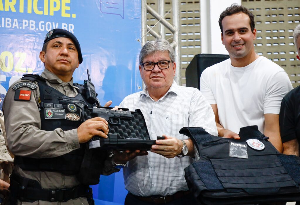 O governador João Azevêdo entregou novos equipamentos e fardamentos para os policiais militares, durante o primeiro bloco das plenárias do Orçamento Democrático Estadual 2023, realizadas nessa quinta-feira (6), em São José de Piranhas; na sexta-feira (7), em Sousa; e nesse sábado (8), em Itaporanga.