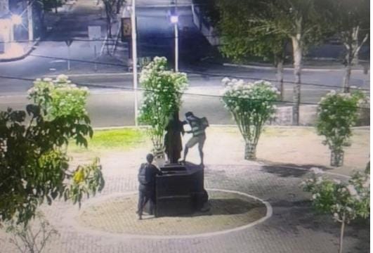 Dois indivíduos foram flagrados pelas câmeras de monitoramento do CICC arrancando a estátua do pedestal, com o auxílio de um terceiro suspeito, que estava com uma carroça de ferro, onde a imagem foi transportada pela Avenida Canal. Com base nas imagens, a equipe da DRF-CG identificou e localizou os três autores do furto, e também descobriu outros dois homens responsáveis pela receptação da imagem. Os responsáveis pelo furto confessaram o crime e informaram que levaram a estátua até a residência do proprietário de uma sucata, localizada na Estação Velha. Este homem ainda levaria a imagem para outro receptador, que tem uma sucata no Distrito Industrial.