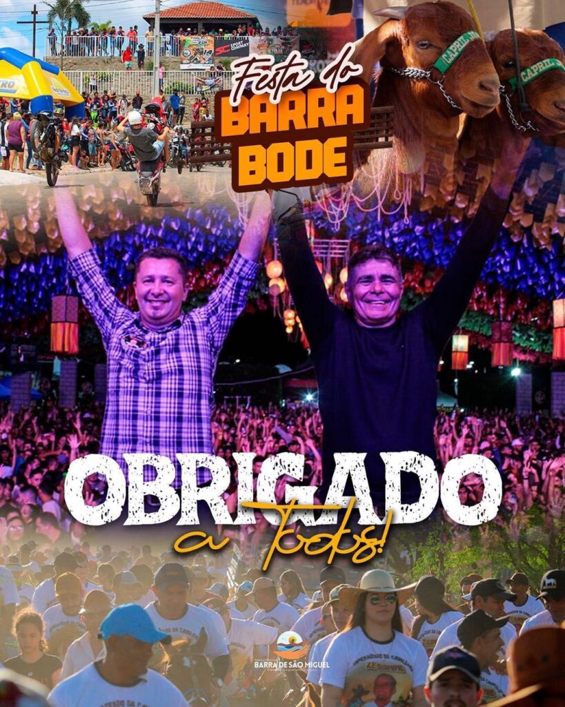 O prefeito da cidade, João Batista, expressou sua gratidão e satisfação em relação aos três dias de festa. Ele agradeceu a todos os envolvidos que tornaram o Barra Bode um sucesso e ressaltou a importância do evento para a cidade, tanto em termos de promoção cultural quanto de movimentação econômica.