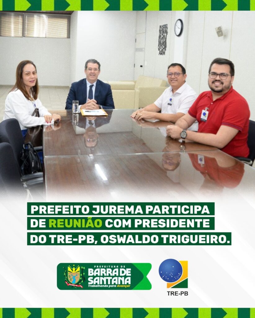 O prefeito de Barra de Santana, Jurema, participou nesta sexta-feira (1º) de uma reunião institucional com o presidente do Tribunal Regional Eleitoral da Paraíba (TRE-PB), desembargador Oswaldo Trigueiro do Valle Filho. O encontro ocorreu na sede do TRE, em João Pessoa, e contou também com a presença da advogada Flávia de Paiva e do secretário municipal de Planejamento, Adriann Monteiro.
