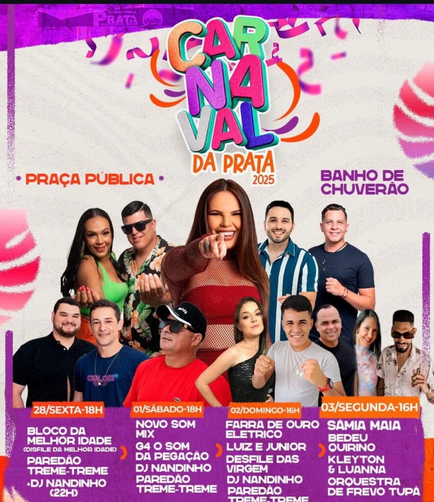 A Prefeitura da Prata anunciou a programação tão aguardada para o Carnaval 2025, que promete agitar a cidade com atrações para todas as idades e gostos. As festividades serão realizadas em praça pública e vão de sexta-feira (28) a segunda-feira (03), reunindo shows, blocos, desfiles e muita música.