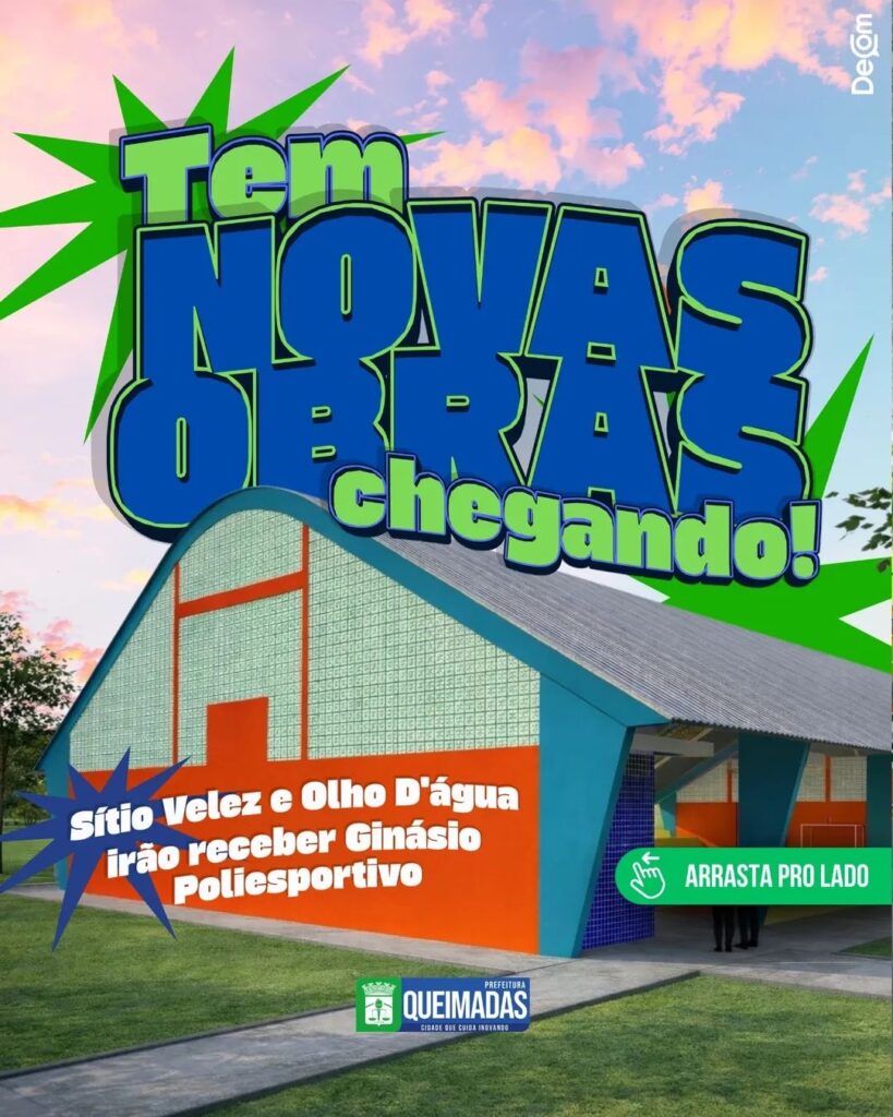 A Prefeitura de Queimadas anunciou nesta quinta-feira, 16, a construção de um novo ginásio poliesportivo que vai beneficiar diretamente os moradores dos sítios Velez e Olho D’Água. O projeto prevê um espaço moderno, com mais de 1.200 metros quadrados de área construída e investimento superior a R$ 1 milhão.