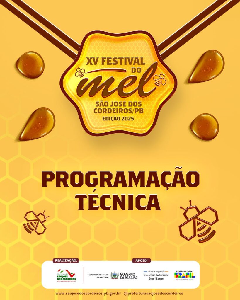 A Prefeitura de São José dos Cordeiros divulgou a programação técnica da XV edição do Festival do Mel, que será realizada nos dias 18, 19 e 20 de setembro de 2025, reafirmando o município como a Capital do Mel do Cariri Paraibano.
