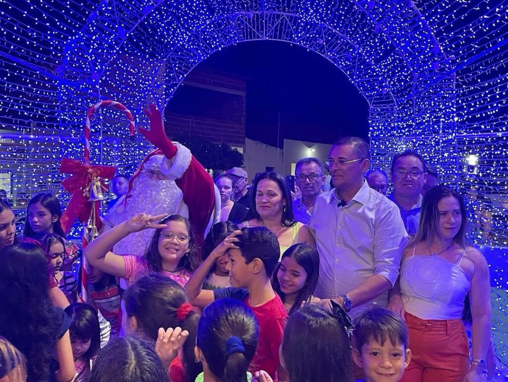 Na última quarta-feira (6), os habitantes da cidade de São Domingos do Cariri testemunharam um espetáculo encantador com o acendimento da Iluminação Natalina e a emocionante chegada do Papai Noel. O evento, realizado na praça pública, marcou o início da temporada festiva com a presença ilustre do Prefeito Onildo Lindberg, da vice-prefeita Nauba Lígia, vereadores, secretários e uma multidão animada.