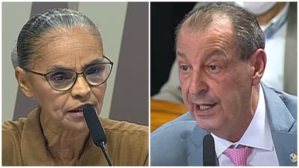 A ministra do Meio Ambiente, Marina Silva, e o senador Marcos Rogério (PL-RO) discutiram nesta terça-feira (27) em audiência na Comissão de Infraestrutura. .