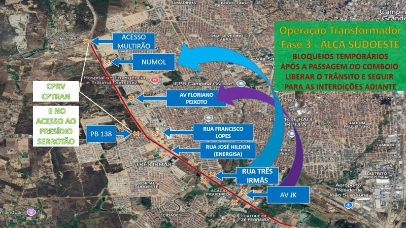 Ao longo da manhã a Superintendência de Trânsito e Transportes Públicos (STTP), fará várias interdições, principalmente no contorno Raimundo Asfora na entrada da cidade e nas proximidades do aeroporto João Suassuna, considerado o trecho mais crítico da viagem.